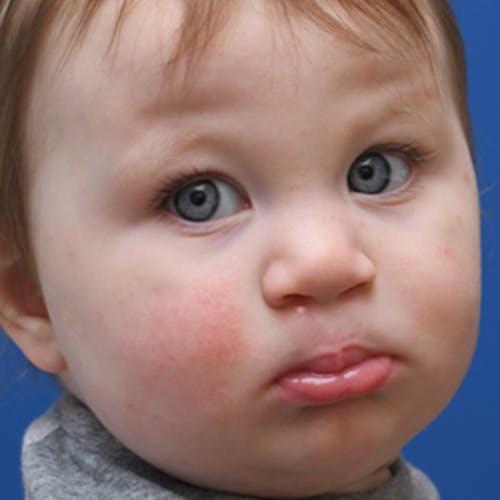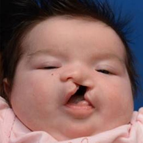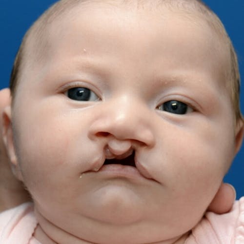 A cleft in the lip is typically repaired at 3-6 months of age. Sometimes a lip “adhesion” or lip molding will be performed first for wide clefts to improve the result of lip repair. The reason for lip repair is appearance-related and should not affect feeding, breathing or speech. The surgeon makes incisions on either side of the cleft and rearranges the tissues to close the gap. The natural contours of the lip and nose are recreated, and the incision is closed with sutures. The procedure usually takes about 2 hours and is performed under general anesthesia. Our surgical team use the most advanced techniques to recreate a natural lip appearance and limit scarring.